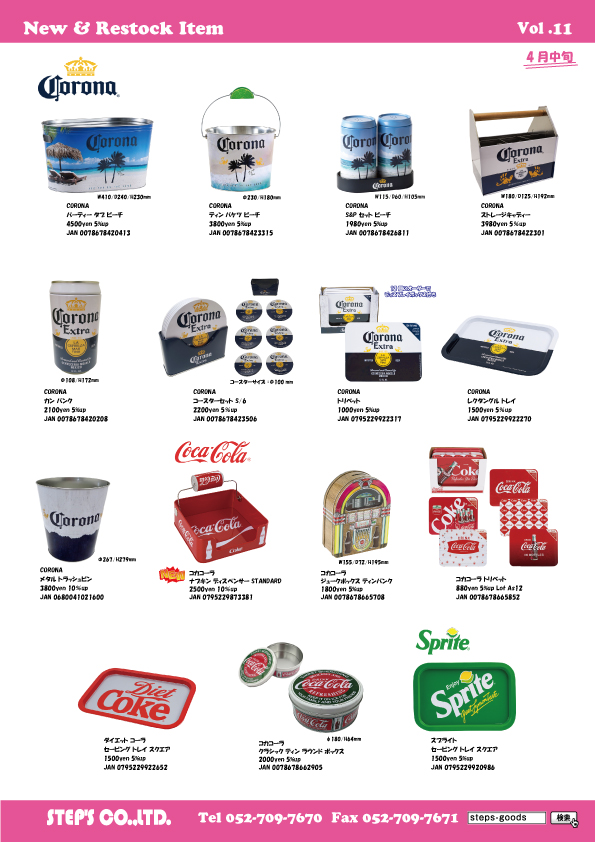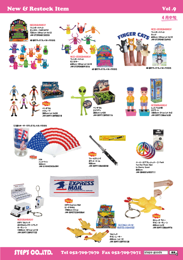 『有限会社ステップス』は、アメリカン雑貨を中心に様々なジャンルのグッズや、コレクタブルアイテムを取り扱っている名古屋の雑貨貿易会社です。
